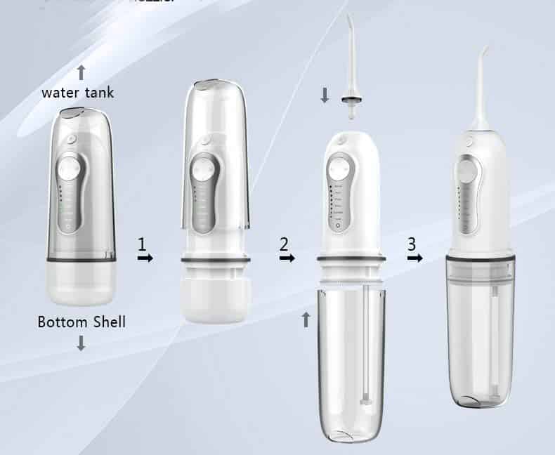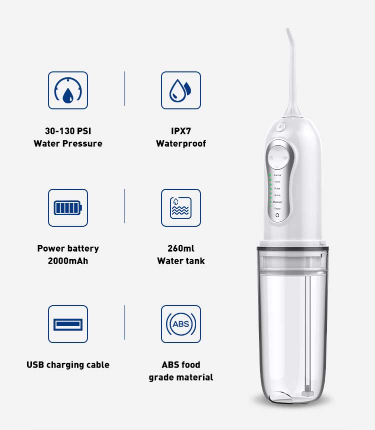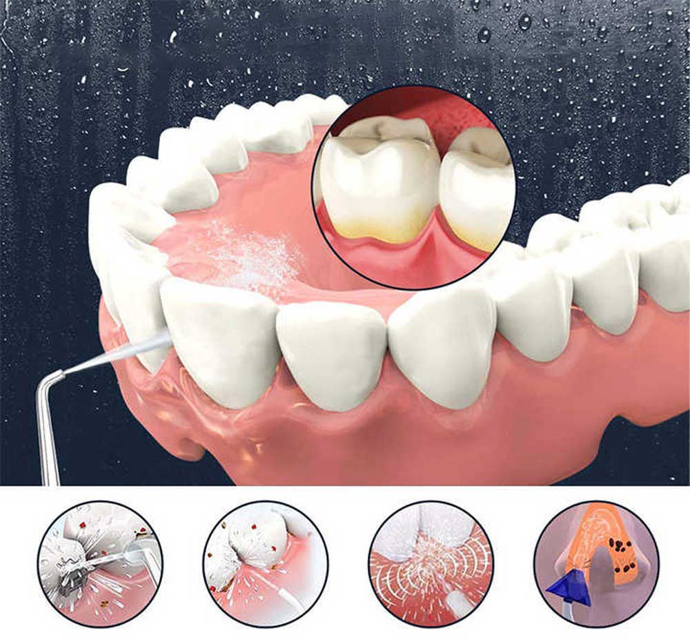 Vsakodnevna uporaba prenosne zobne prhe lahko učinkovito odstrani 99,9 % zobnih oblog in ostankov hrane, ki jih ni mogoče doseči s tradicionalnim ščetkanjem ali zobno nitko. Popolna za ljudi z vsadki, zobnimi aparati, kronami in mostički itd.